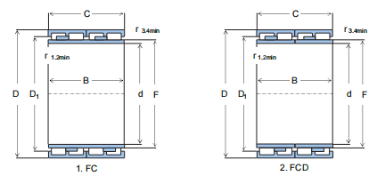 Four-row Cylindrical Roller Bearings OD:1180mm/OD:1220mm/OD:1360mm/OD:1440mm